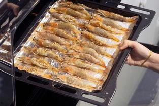 2. 烤制:将烤盘放入预热好的烤箱中,烤制10分钟左右,期间可以翻面一次,让虾均匀受热。